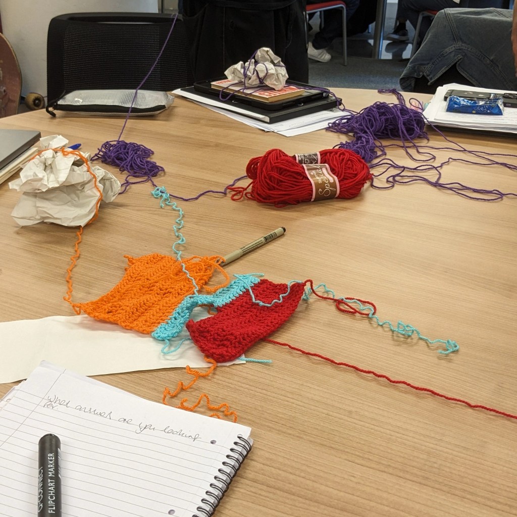 I really enjoyed this exercise. What we produced, like research, wasn’t at all what I had in mind when we collected the crochet and markers from the desk and embarked on this deconstruction.