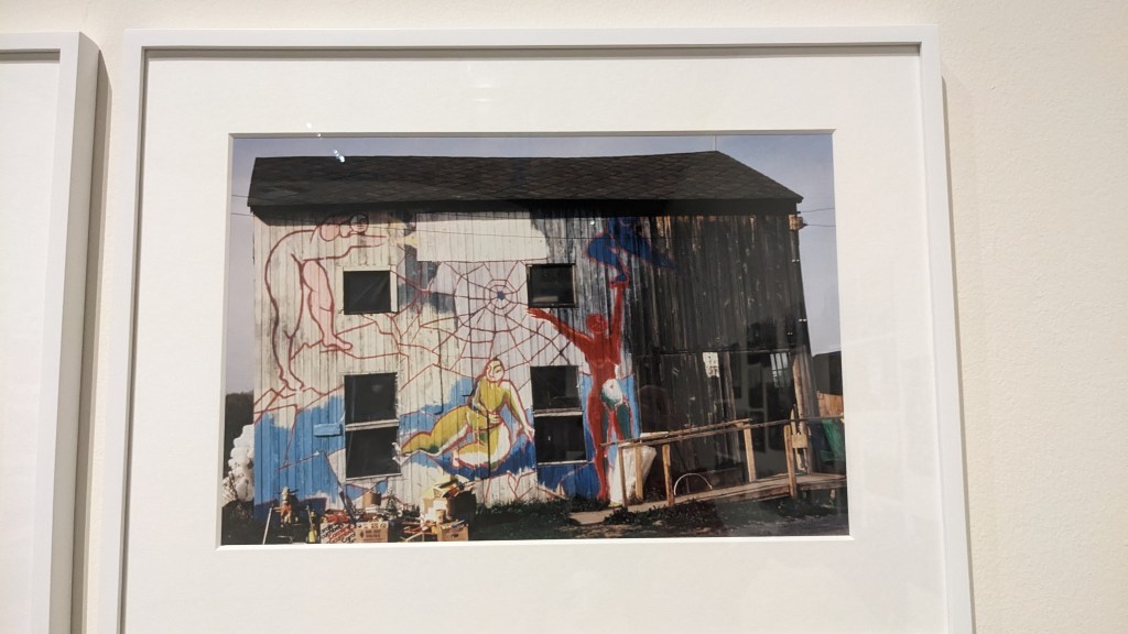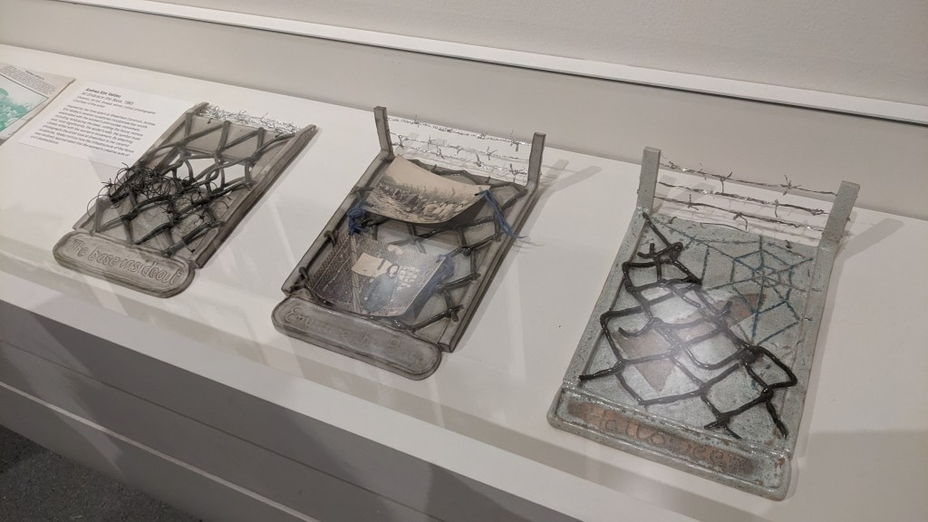 I was thrilled that a large part of this exhibition was dedicated to the photography and art of Greenham Common. Being able to see the prominence of the spiderwebs and chain link fences continue within the literature and illustrations that were on display as well as the camaraderie and community that was captured in the photography documenting the protest. And how through peaceful protest, creativity and creation can be at the forefront and integral in communicating change.