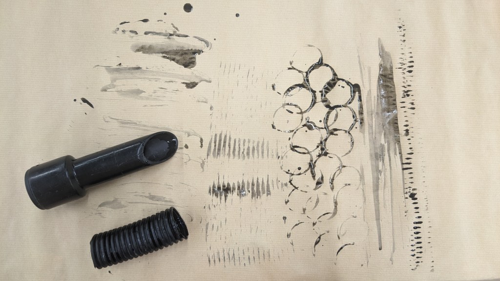 The print workshop focused on how to produce oak gall ink and mark making onto fabric. Naturally, I took parts of my hoover and my iron with me to continue experimenting for my concept development project and used these as my tools for the mark marking.